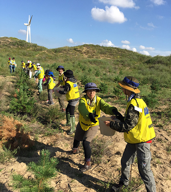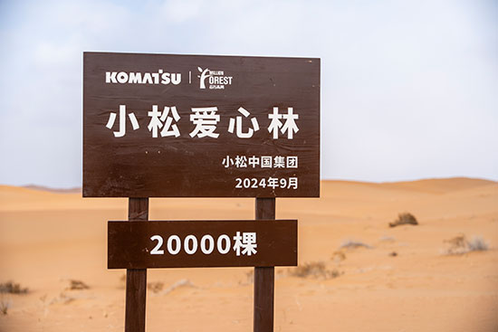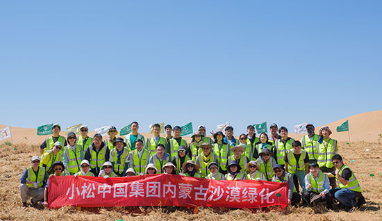 自2005年起,小松開始捐款資助非營利組織在中國內(nèi)蒙古科爾沁地區(qū)開展的沙漠綠化活動。2009年后,小松日本總公司和小松中國集團(tuán)各公司開始組織員工作為志愿者共同赴當(dāng)?shù)貐⒓又矘浠顒印?024年開始,小松中國與中國綠化基金會合作,攜手在內(nèi)蒙古阿拉善地區(qū)支持沙漠綠化項(xiàng)目。經(jīng)過十幾年的持續(xù)努力,已累計植樹超過43萬棵,存活率達(dá)71%。