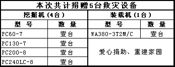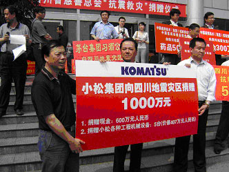 2008年5月12日,四川省汶川縣發(fā)生8.0級特大地震,給當地造成重大人員傷亡和財產損失。小松集團在第一時間緊急援助災區(qū)1000萬元,其中包括RMB600萬元現金及價值400余萬元的災區(qū)救援重建急需的工程機械設備。